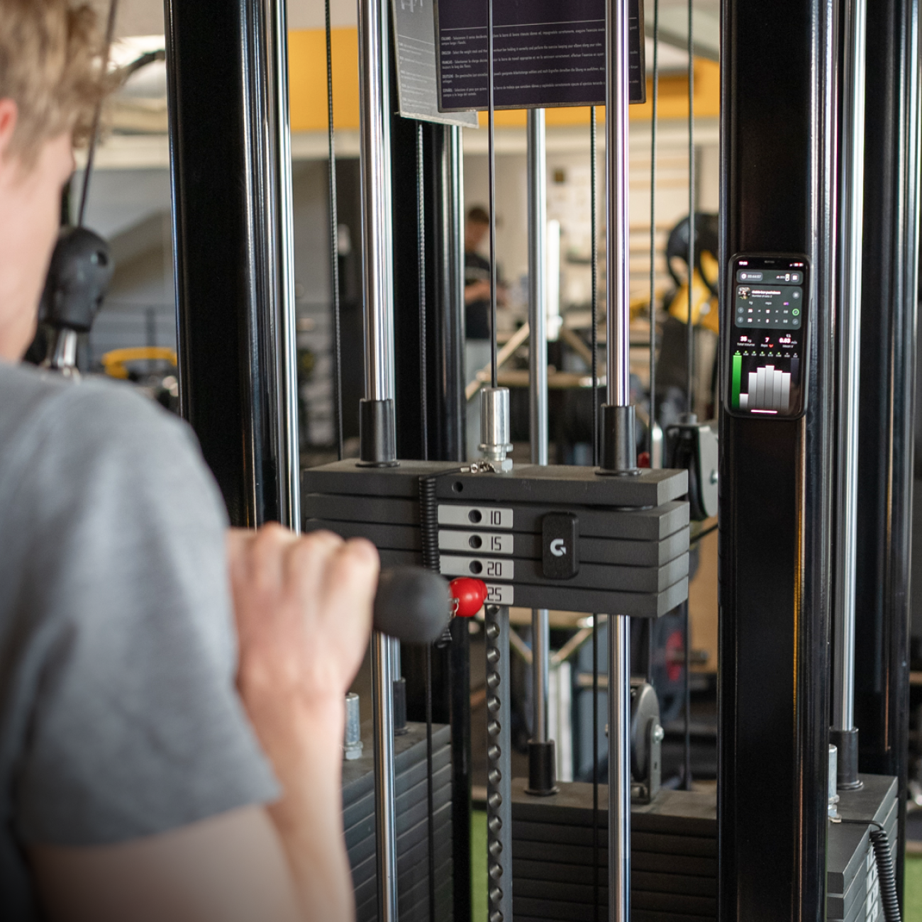 Simply clip Gpath onto your barbell or weight stack machine.